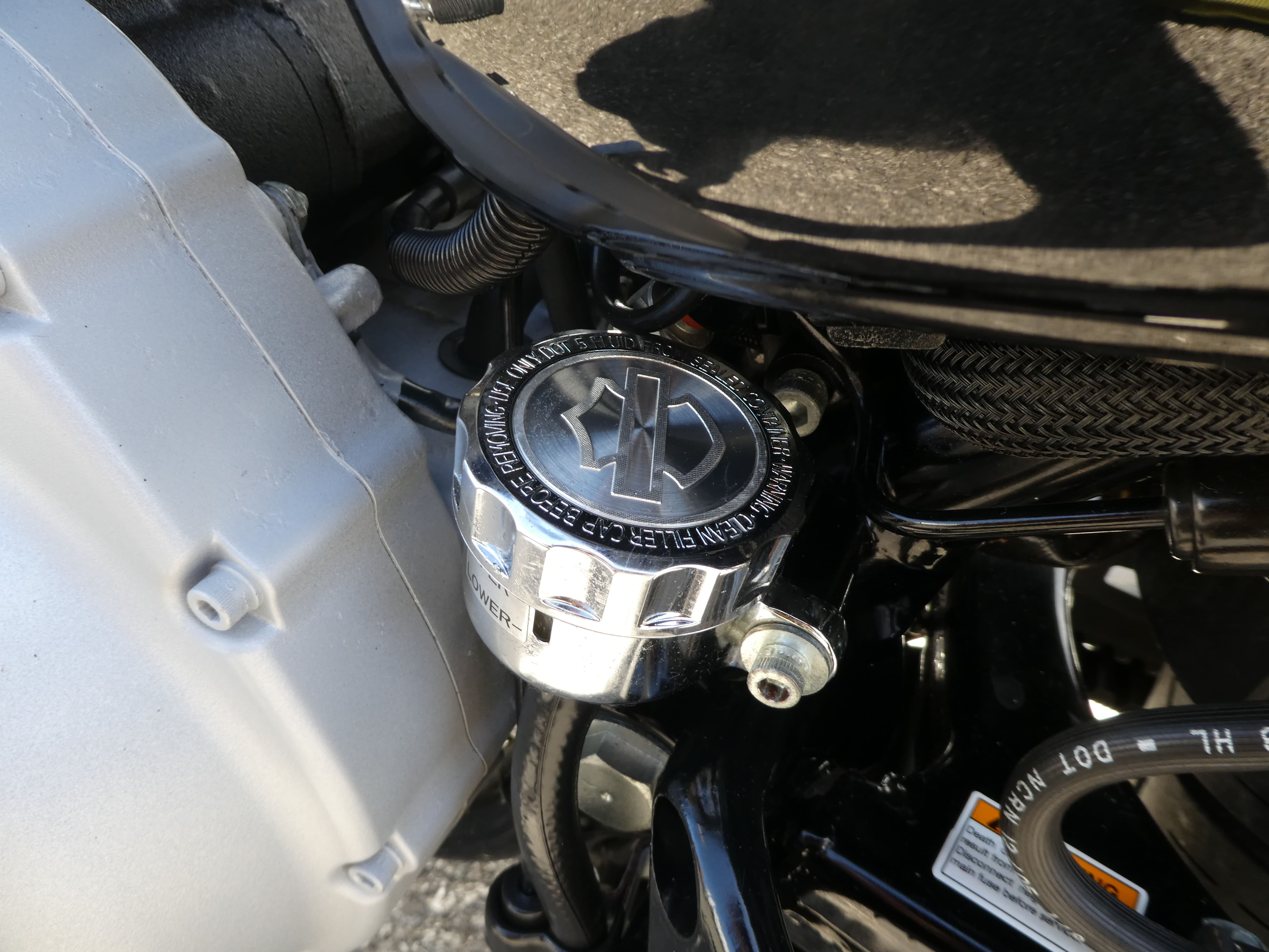 - Harley Davidson rear brake fluid reservoir with Harley Davidson logo