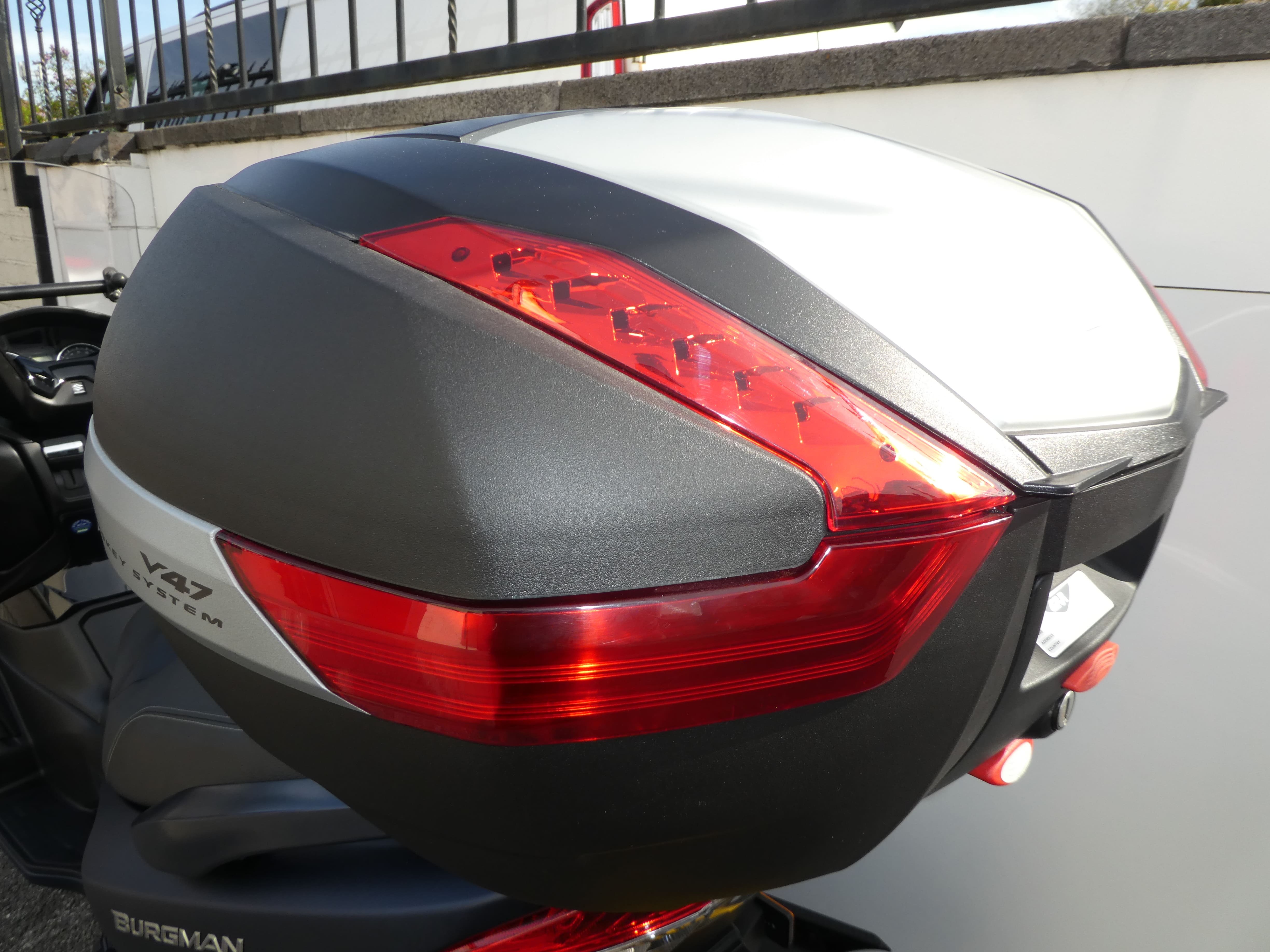 - Givi V47 47-litre top case, with genuine Suzuki mounting plate