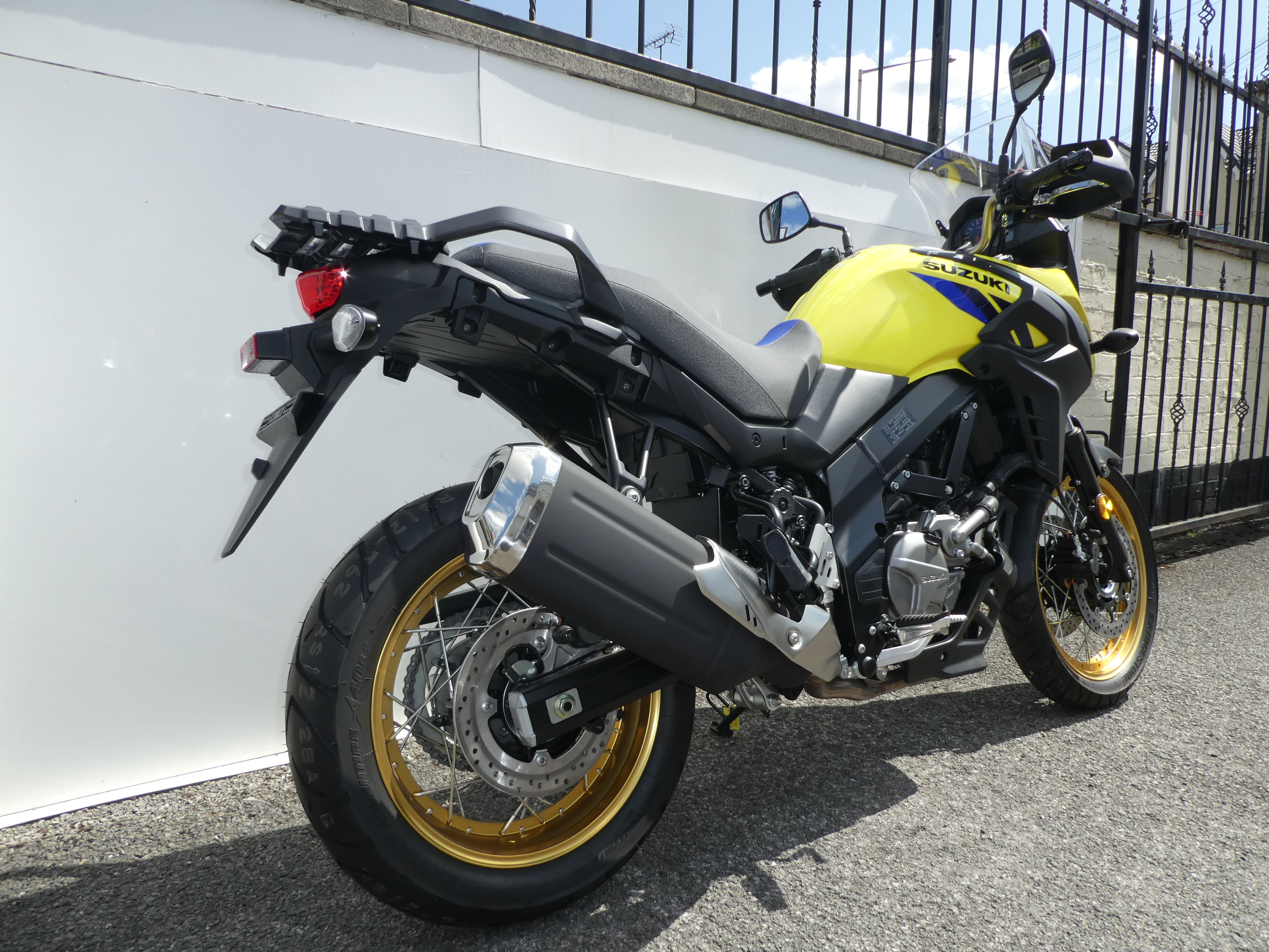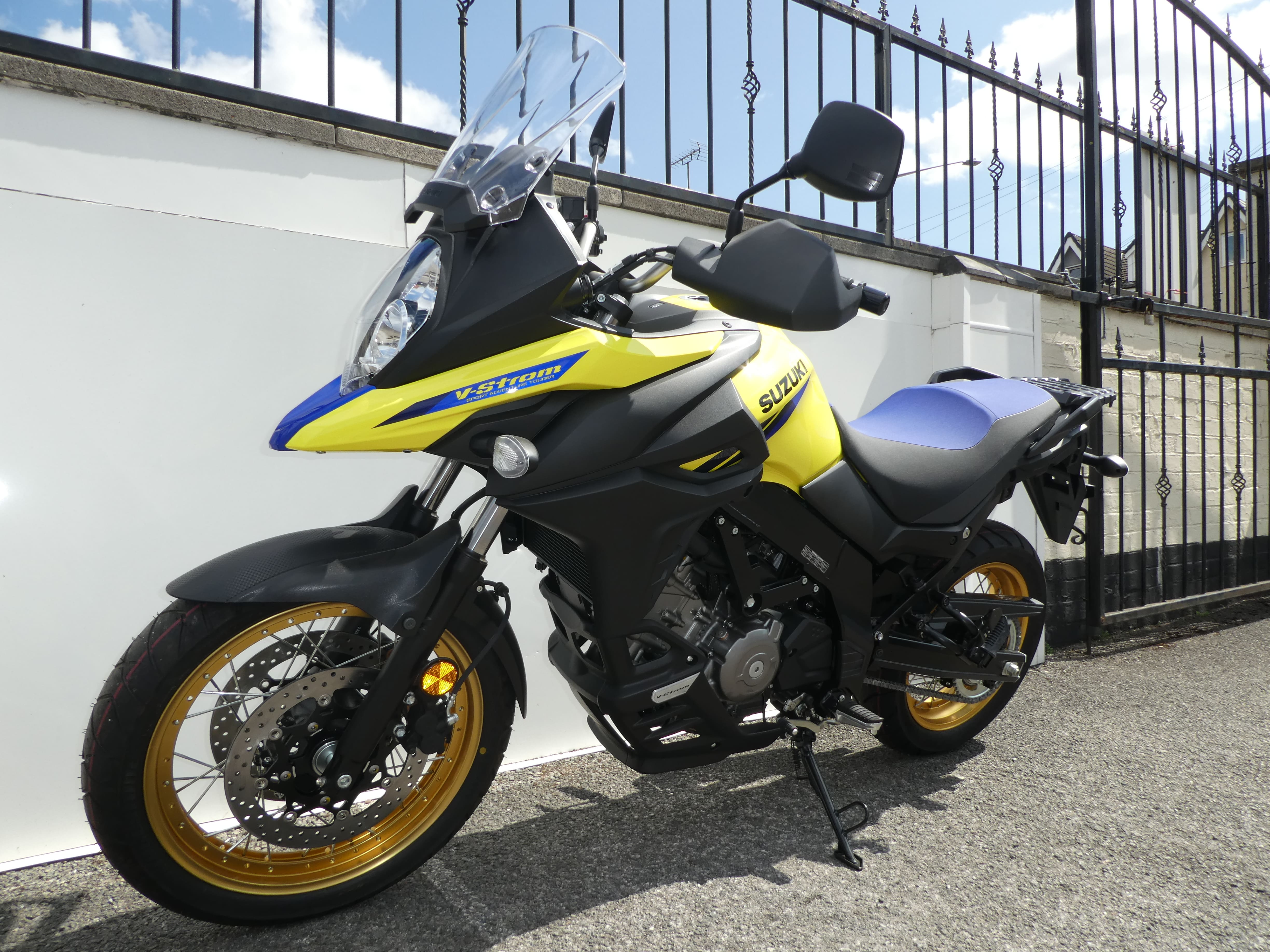 For the XT version, Suzuki have generously equipped the bike with extra adventure accessories. Knuckle guards protect your hands from bad weather, keeping them comfortable in all conditions. Lower cowling shields the engine and underside of the bike against dust, debris and grime. Wire-spoked wheels absorb some shock from the road, giving you and your passenger a more comfortable ride.